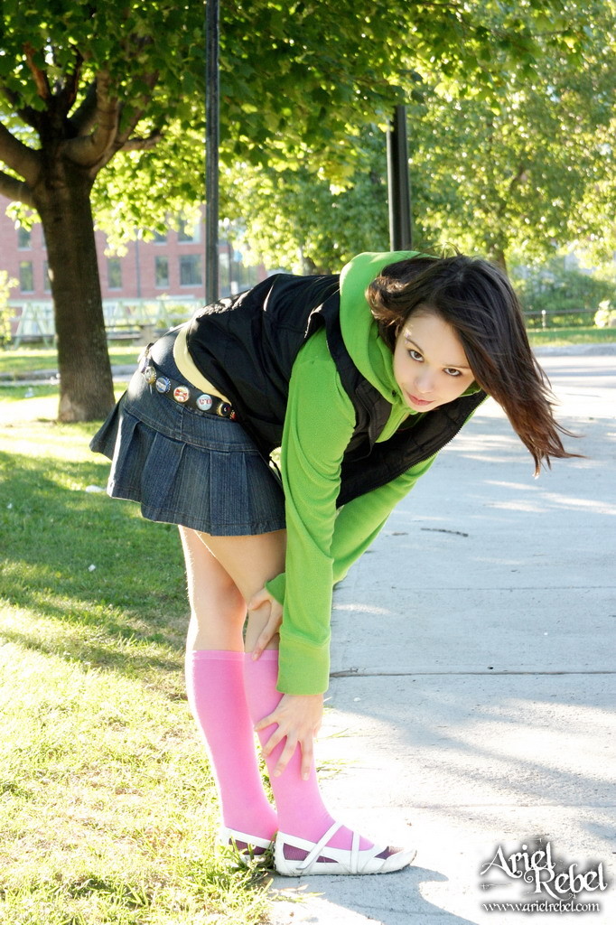 Teen brunette girls showing pussy on the street